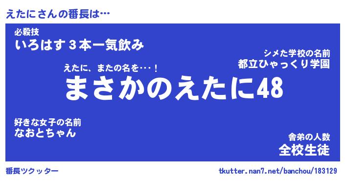 | ヘコむあだ名 | 『えたもー』『なまこ酢』『えたを』 |