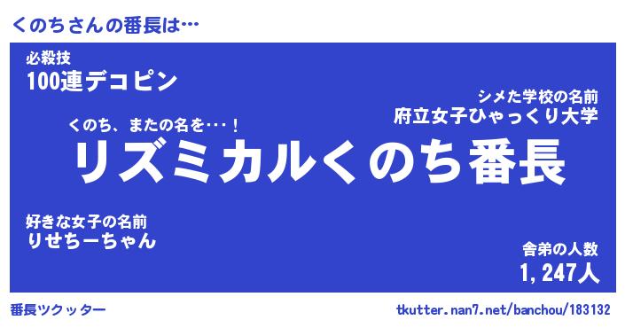 | ヒーロー風カッコイイあだ名 | 『スーパークノチ』『ウルトラくのちマン』 |