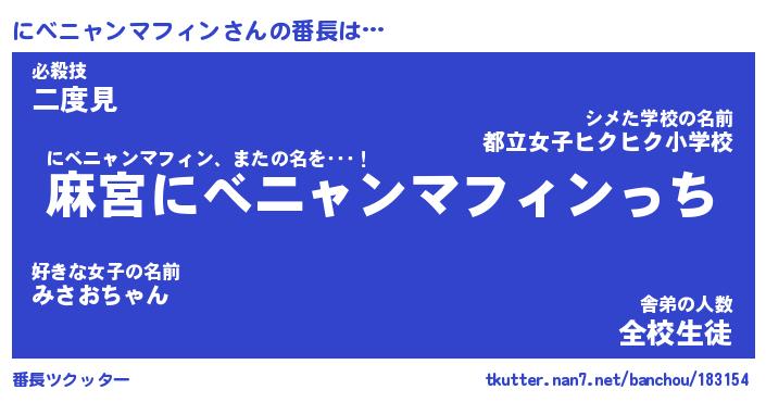 | 肩書あだ名 | 『にべニャンマフィン御曹司』 |