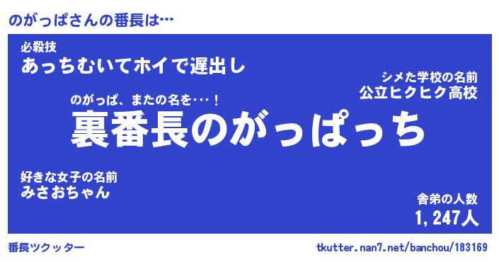 | ファンタジー風あだ名 | 『ノガフェル』『エターナルノガッパー』 |