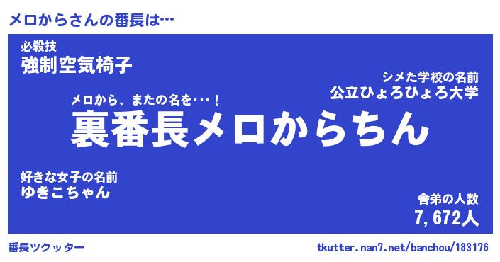 | 肩書あだ名 | 『メロから店長』『メロから国家主席』 |