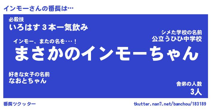 | 猫の名前『インモーにゃん』性別『♀』 |