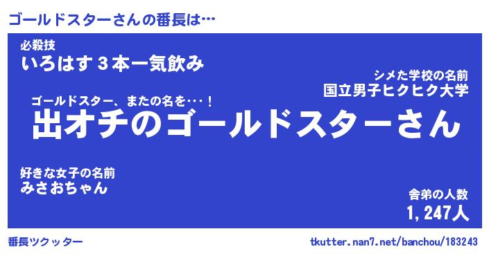 | 意味不明あだ名 | 『ペロリンゴールドスター』 |