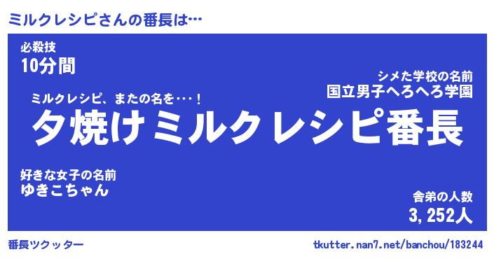 | ヘコむあだ名 | 『ミルもー』『牛乳』『ミル太郎』 |