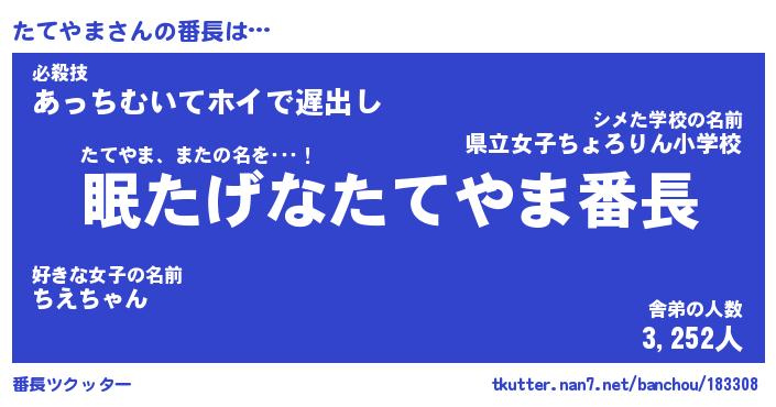 | ファンタジー風あだ名 | 『タテフェル』『エターナルタテヤマー』 |