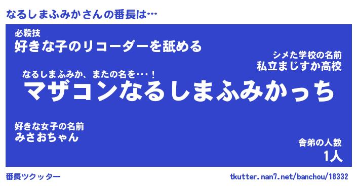 | 伝説のあだ名 | 『封印されしスナイパーなるしまふみか』 |