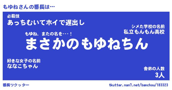 | ヘコむあだ名 | 『もゆもー』『豆乳』『もゆお』 |