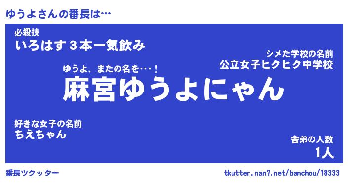 | ピコ太郎風あだ名 | 『ユコ八郎』『ピユ八郎』『ユウ六郎』 |