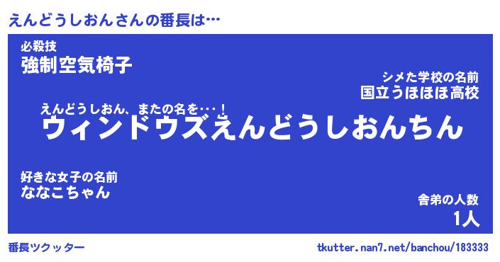 | ヘコむあだ名 | 『えんっふぃ~』『牛乳』『えんお』 |