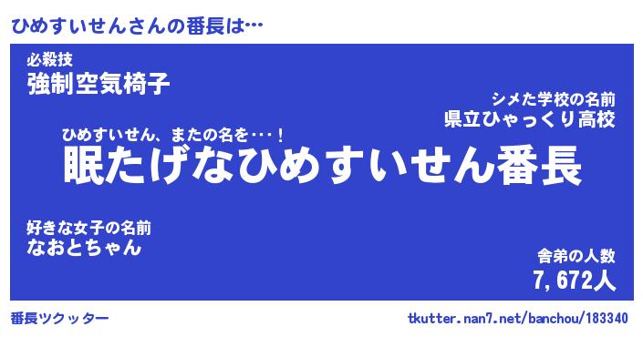 | 伝説のあだ名 | 『封印されしスナイパーひめすいせん』 |