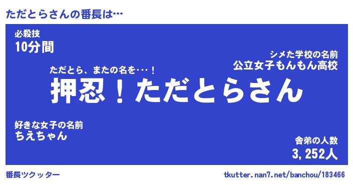 | 意味不明あだ名 | 『ペロリンただとら』『永久保存ただとら』 |