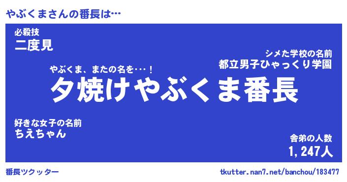 | 意味不明あだ名 | 『ペロリンやぶくま』『永久保存やぶくま』 |
