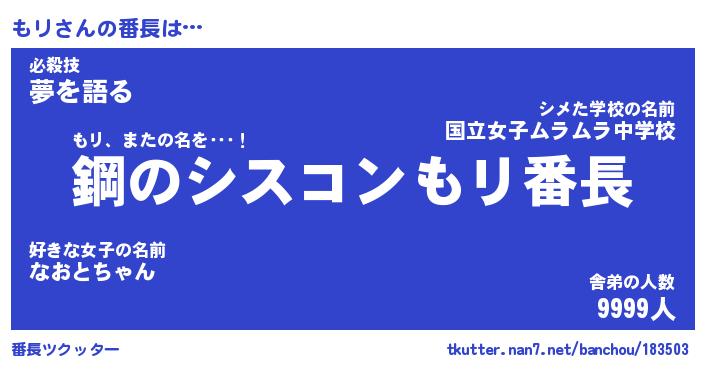 | ヘコむあだ名 | 『もリもー』『豆乳』『もリっちょ』 |