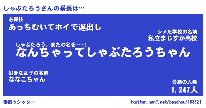 | 肩書あだ名 | 『しゃぶたろう店長』『しゃぶたろう班長』 |