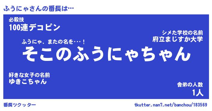 | 意味不明あだ名 | 『ペロリンふうにゃ』『永久保存ふうにゃ』 |