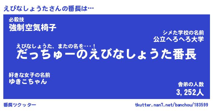 | 2回繰り返すあだ名 | 『えびえび』『ええびび』『かたかた』 |