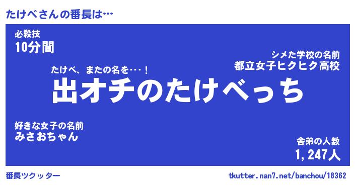 | 伝説のあだ名 | 『伝説のスナイパーたけべ』 |
