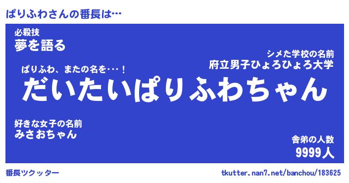 | 欧米人風あだ名 | 『マイケルぱりふわ』『ウサインぱりふわ』 |