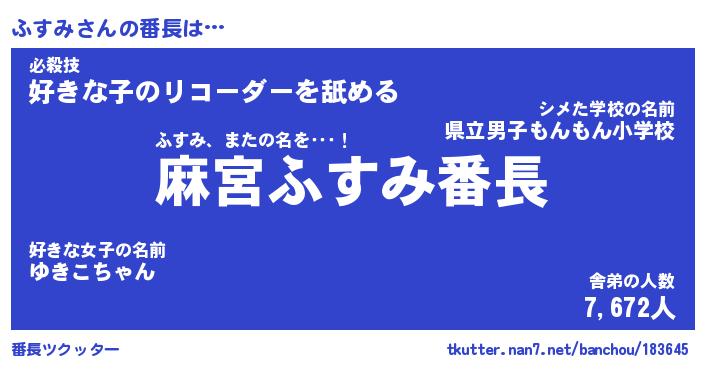 | ポケモン風あだ名 | 『フスチュウ』『フスミダネ』 |