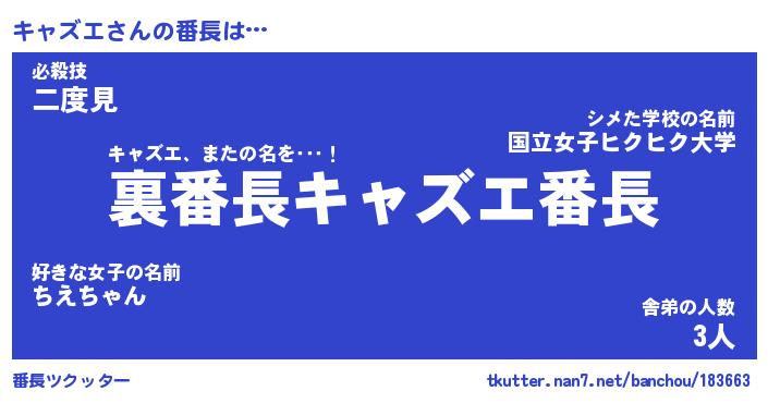 | 意味不明あだ名 | 『ペロリンキャズエ』『永久保存キャズエ』 |