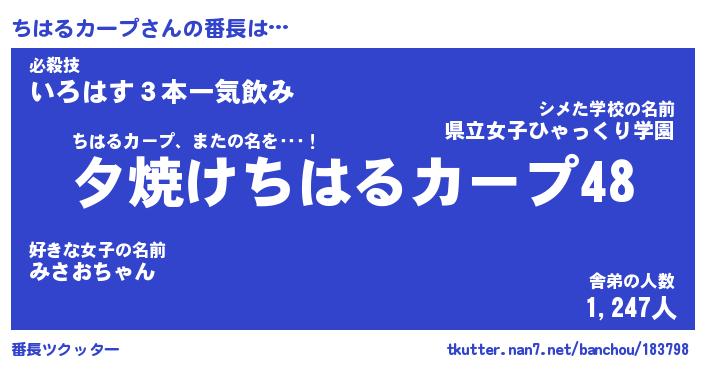 | 肩書あだ名 | 『ちはるカープ店長』『ちはるカープ先生』 |