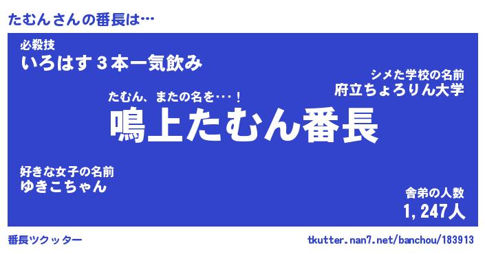 | ポケモン風あだ名 | 『タムチュウ』『タムンダネ』 |