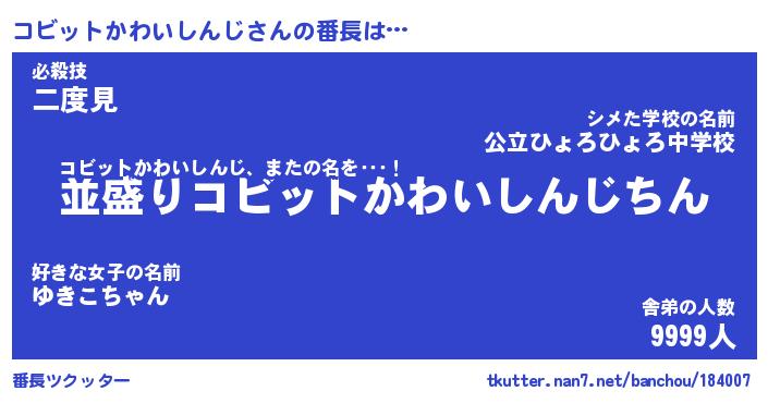 | 肩書あだ名 | 『コビットかわいしんじ御曹司』 |