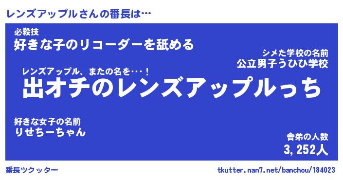 | 伝説のあだ名 | 『伝説のスナイパーレンズアップル』 |