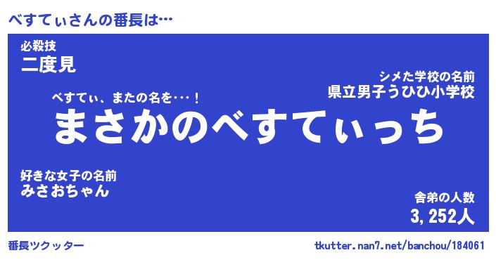 | 2回繰り返すあだ名 | 『べすべす』『べべすす』『ねばねば』 |