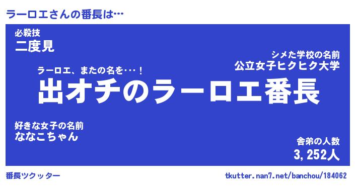 | ヘコむあだ名 | 『ラーにー』『豆乳』『ラーぷりん』 |