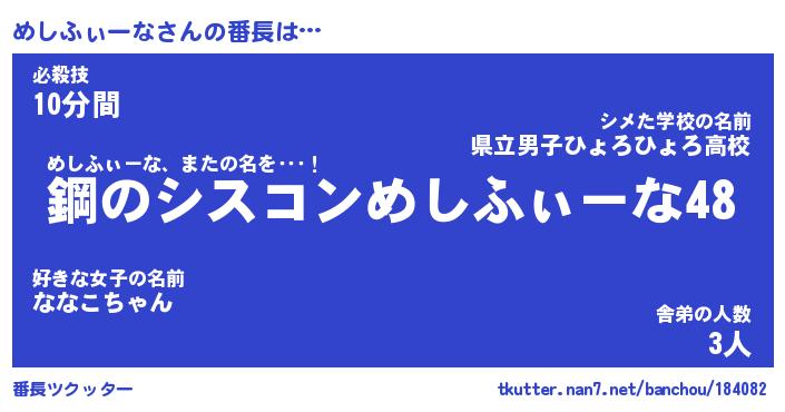 | 欧米人風あだ名 | 『マイケルめしふぃーな』 |