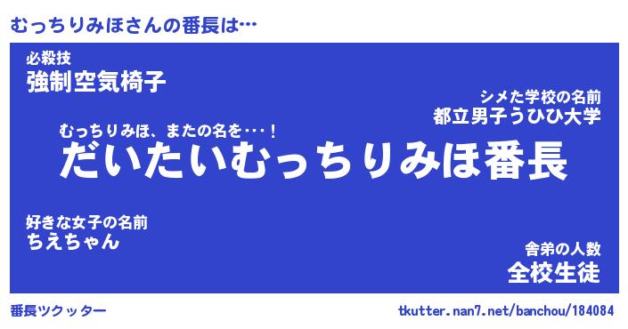 | 欧米人風あだ名 | 『マイケルむっちりみほ』 |