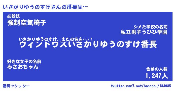 | 男性向けラノベタイトル風あだ名 | 『いさかりゆうのすけの憂鬱』 |
