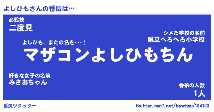 | ポケモン風あだ名 | 『ヨシチュウ』『ヨシヒダネ』 |