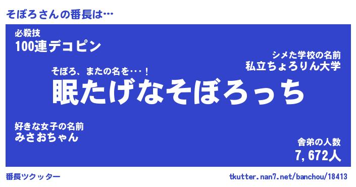 | ポケモン風あだ名 | 『ソボチュウ』『ソボロダネ』 |