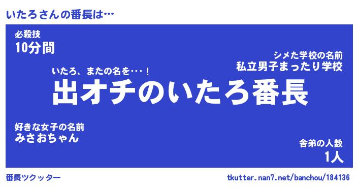 | 肩書あだ名 | 『いたろ店長』『いたろ総理大臣』 |