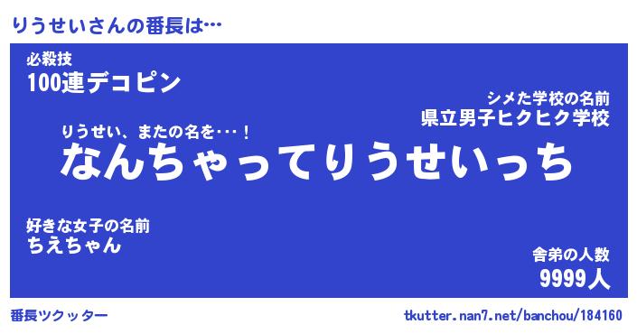 | 意味不明あだ名 | 『ペロリンりうせい』『永久保存りうせい』 |