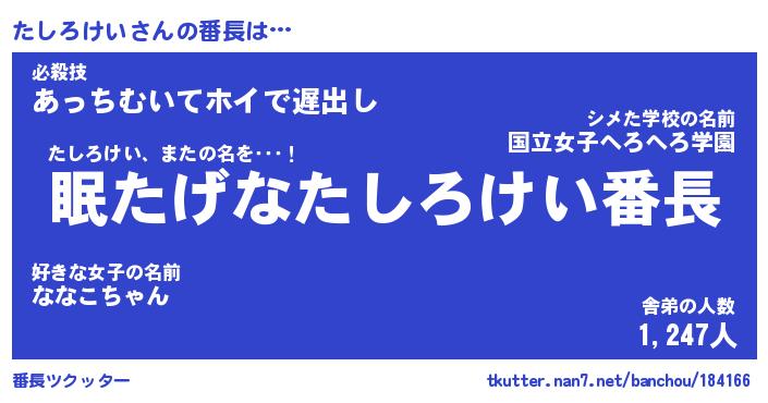 | ヒーロー風カッコイイあだ名 | 『スーパータシロケイ』『銀牙騎士タシ』 |