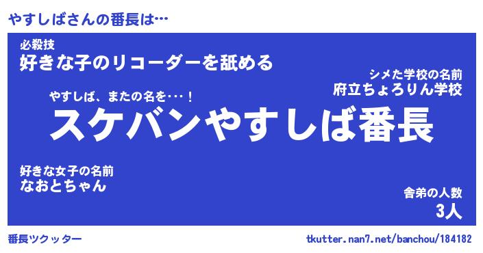 | 意味不明あだ名 | 『ペロリンやすしば』『永久保存やすしば』 |