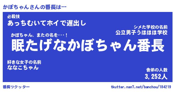 | 2回繰り返すあだ名 | 『かぼかぼ』『かかぼぼ』『ぬめぬめ』 |