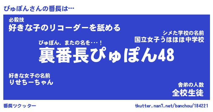 | 意味不明あだ名 | 『ペロリンぴゅぽん』『永久保存ぴゅぽん』 |
