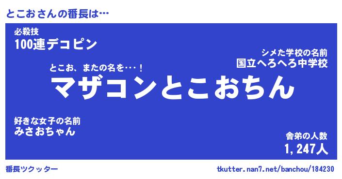 | ヒーロー風カッコイイあだ名 | 『スーパートコオ』『ウルトラとこおマン』 |