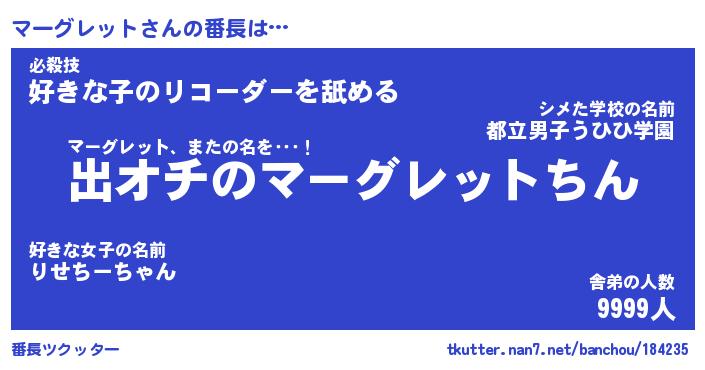| 胡散臭い通販商品みたいなあだ名 | 『必ず成功する霊験あらたかなお札…その名も「マーグレット」』 |