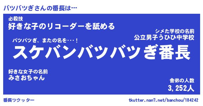 | ヒーロー風カッコイイあだ名 | 『スーパーバツバツギ』『幻影騎士バツ』 |