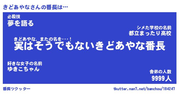 | 肩書あだ名 | 『きどあやな御曹司』『きどあやな塾長』 |