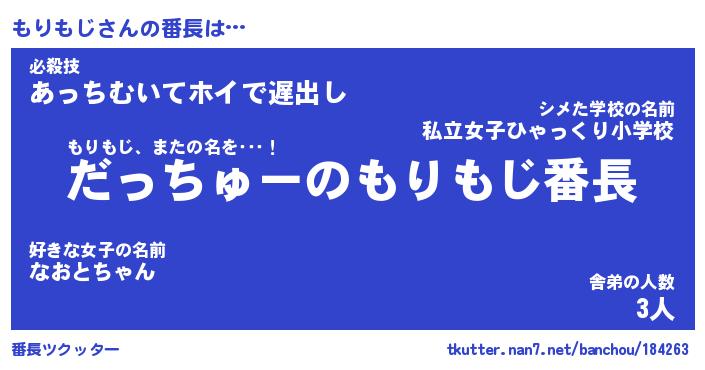 | 意味不明あだ名 | 『ペロリンもりもじ』『永久保存もりもじ』 |