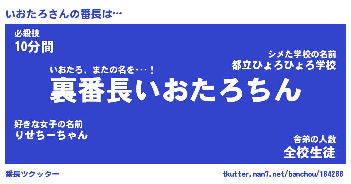 | 意味不明あだ名 | 『ペロリンいおたろ』『永久保存いおたろ』 |