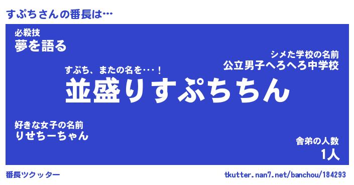 | ヒーロー風カッコイイあだ名 | 『スーパースプチ』『ウルトラすぷちマン』 |
