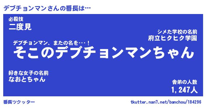 | 意味不明あだ名 | 『ペロリンデブチョンマン』 |