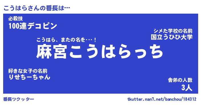 | ファンタジー風あだ名 | 『コウフェル』『エターナルコウハラー』 |